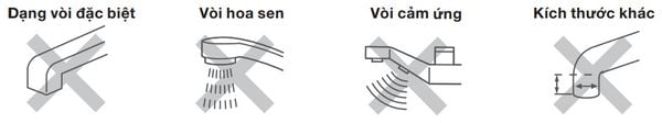 - Bộ vòi kết nối của OSS-T7 có thể không tương thích được với 1 số loại vòi như: dạng vòi đặc biệt, vòi hoa sen, vòi cảm ứng, vòi <15mm và bề ngan >20mm.